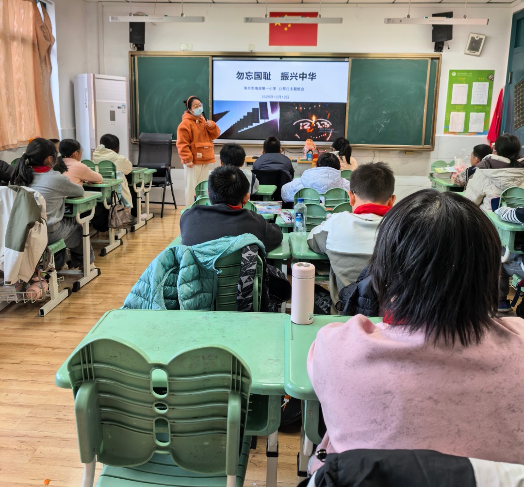 今年的国家公祭日是一个周六,因此,我们集体提前在周五就进行了这次班会主题活动。追忆历史,为遇难同胞默哀……