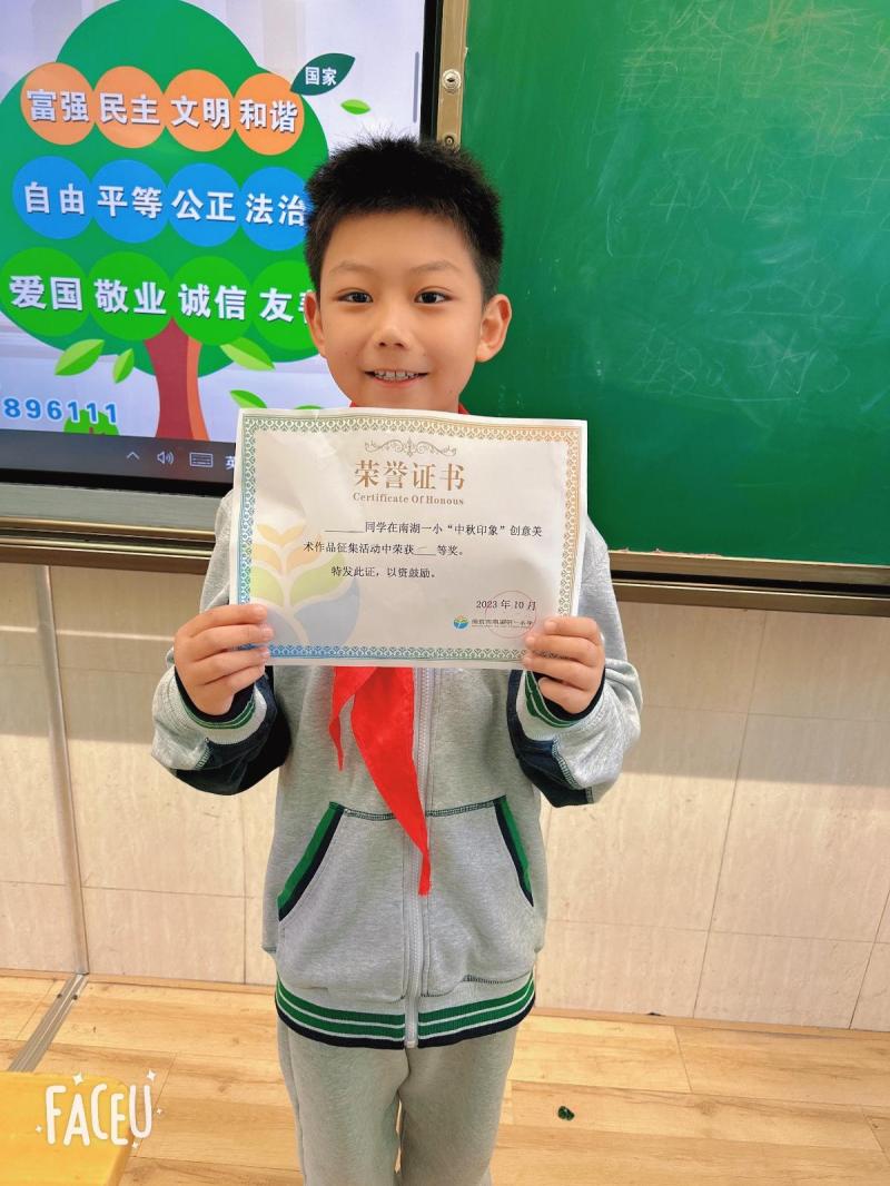 在校“中秋印象”创意美术作品征集活动中,我们班的王佳意、金一诺、周奕彤和刘韫汐获得了一等奖。祝贺同学们!