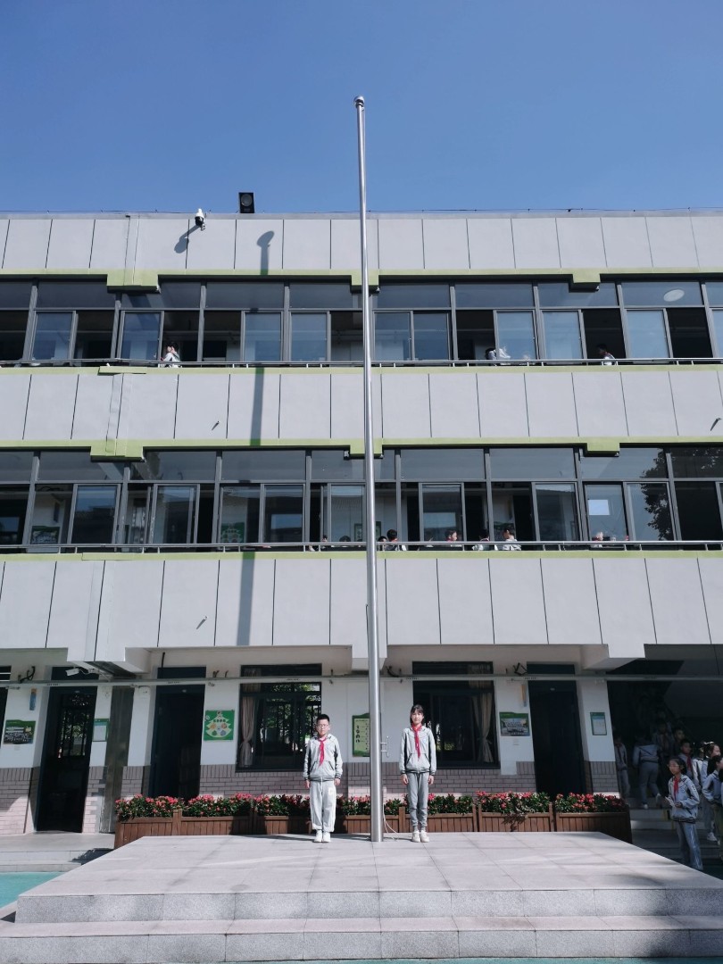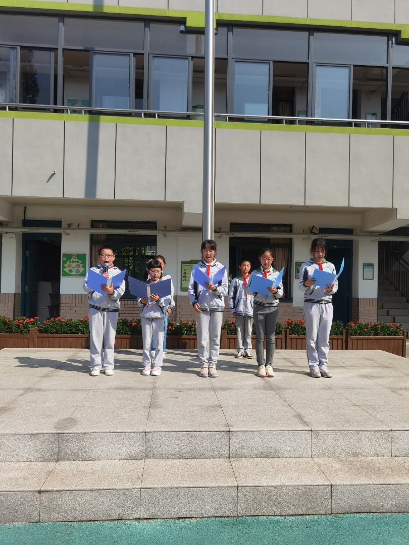 今天终于轮到五(2)班升旗啦,两位升旗手早早就来到了国旗旁等待升旗仪式,还有四位朗诵的同学,不仅给大家科普了少先队的相关知识,还增设了提问环节,并给同学们准备了丰富的奖品呢,真是欢乐多多啊!
