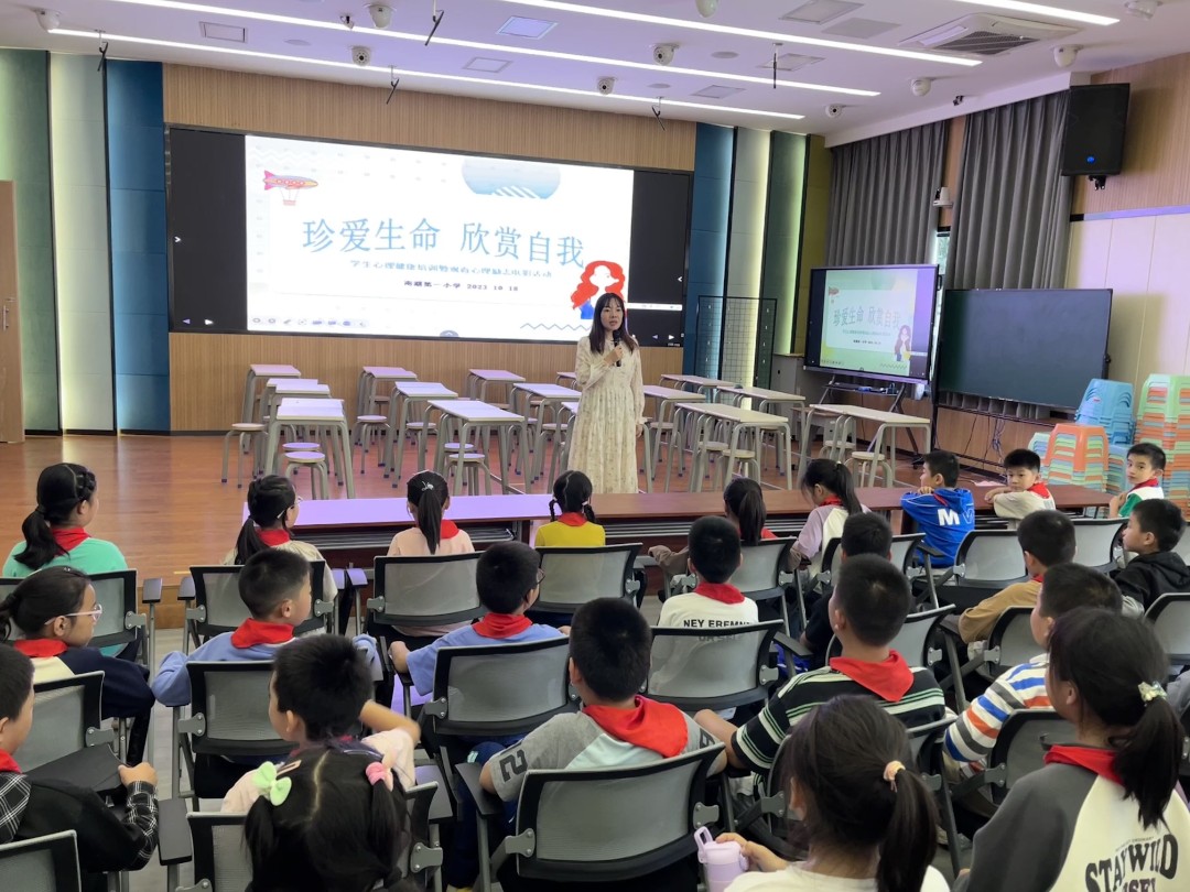 上周三,四(4)班同学来到报告厅,参加了校心理健康月“珍爱生命,欣赏自我”的活动,听心理余老师分享了心理健康的小知识,一起观看了一部电影《奇迹男孩》。观影后同学们被这个成长的故事打动,撰写了观后感。