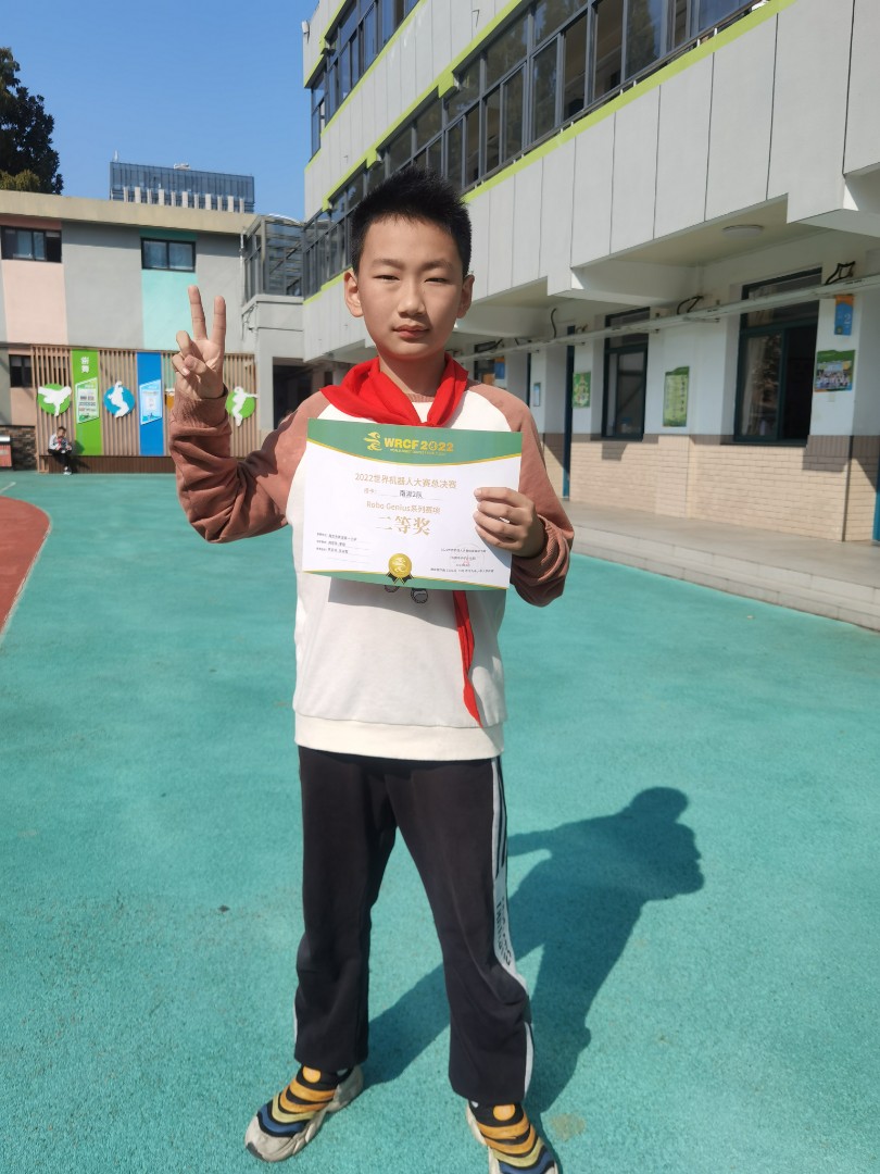 今天升旗仪式结束后,为优秀的学生颁奖了。我们班的姚同学荣获机器人大赛二等奖。真为他骄傲!